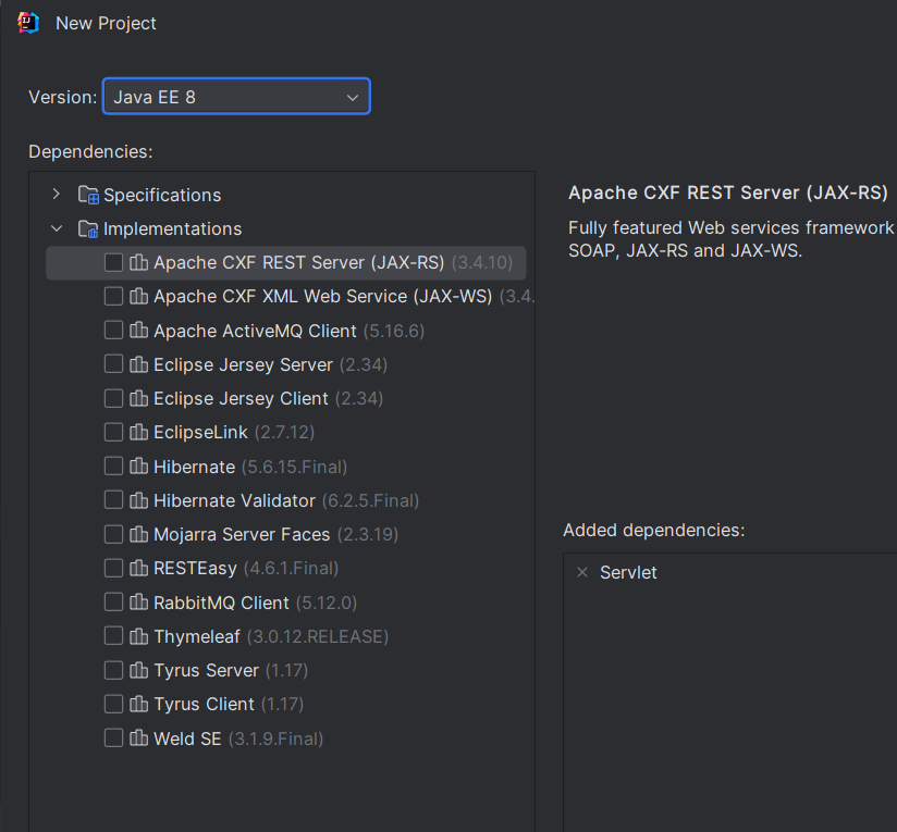 1. 프로젝트 생성 시 버전은 Java EE 8버전으로 맞추고 생성하면 된다.
