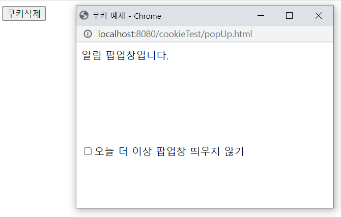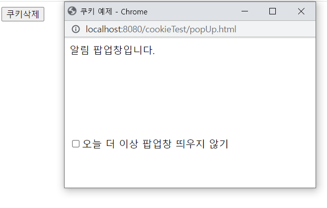 - 쿠키삭제를 클릭 후 새로고침을 누르면 팝업창이 다시 나타난다.